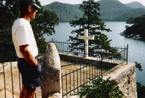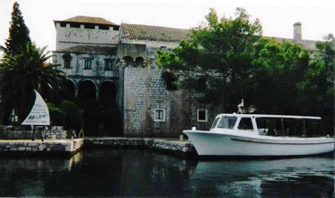 Back at the boatdock, after a brief wait, the small tour boat took us to another stop, evidently a beach, where we picked up a full load of beachgoers, and then returned to the park entrance. Again we were the only passengers in the minivan back to Polače. We stopped at the bakery for a quick apple strudel, then back to Perception and off, sailing in 10 knot breeze back past Korčula, around the east end of the island this time, and back north to the east end of Hvar island, the opposite end from Hvar town, across from the mountainous coast of the mainland.